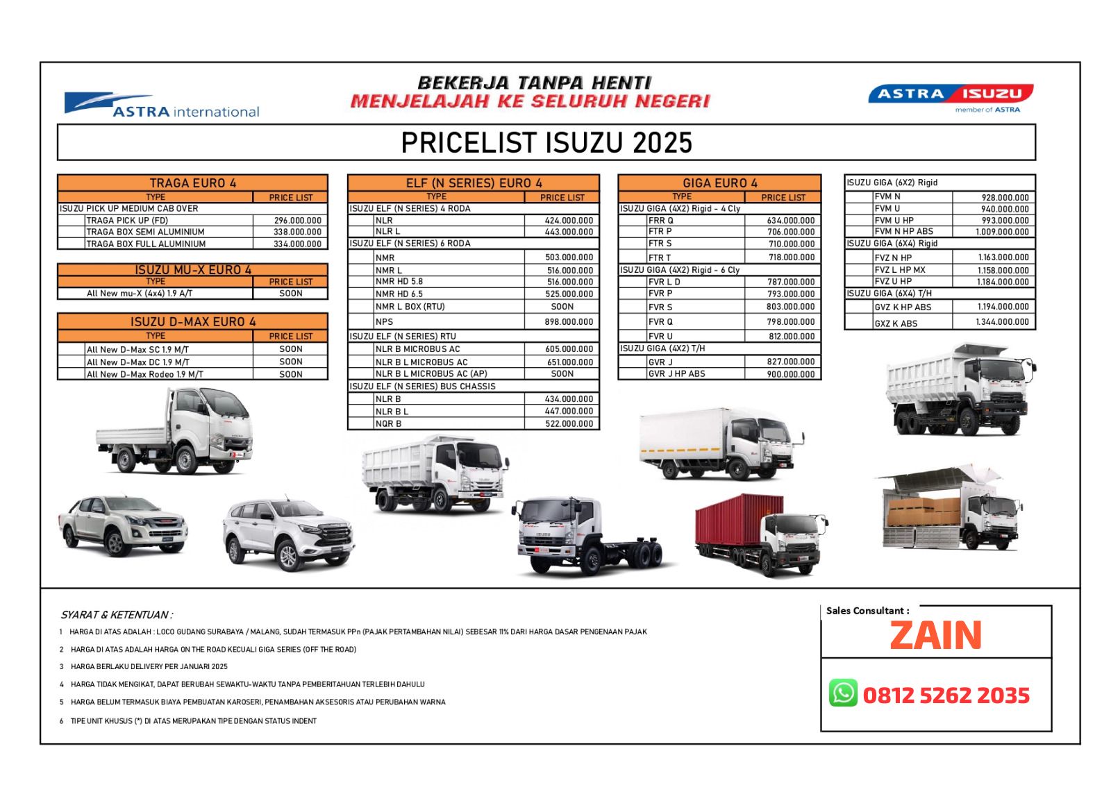 Info Produk, konsultasi, Simulasi cash / Kredit dapat menghubungi kami: ZAIN Sales Executive Telp/WA: 0812 5262 2035 Isuzu Malang.Com